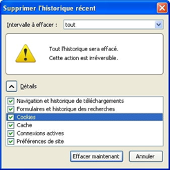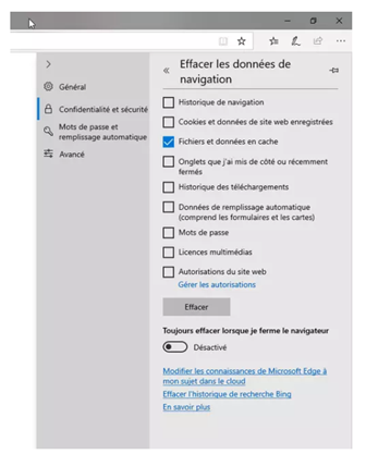 - Aller dans Paramètres / Historique / Effacer les données de navigation...