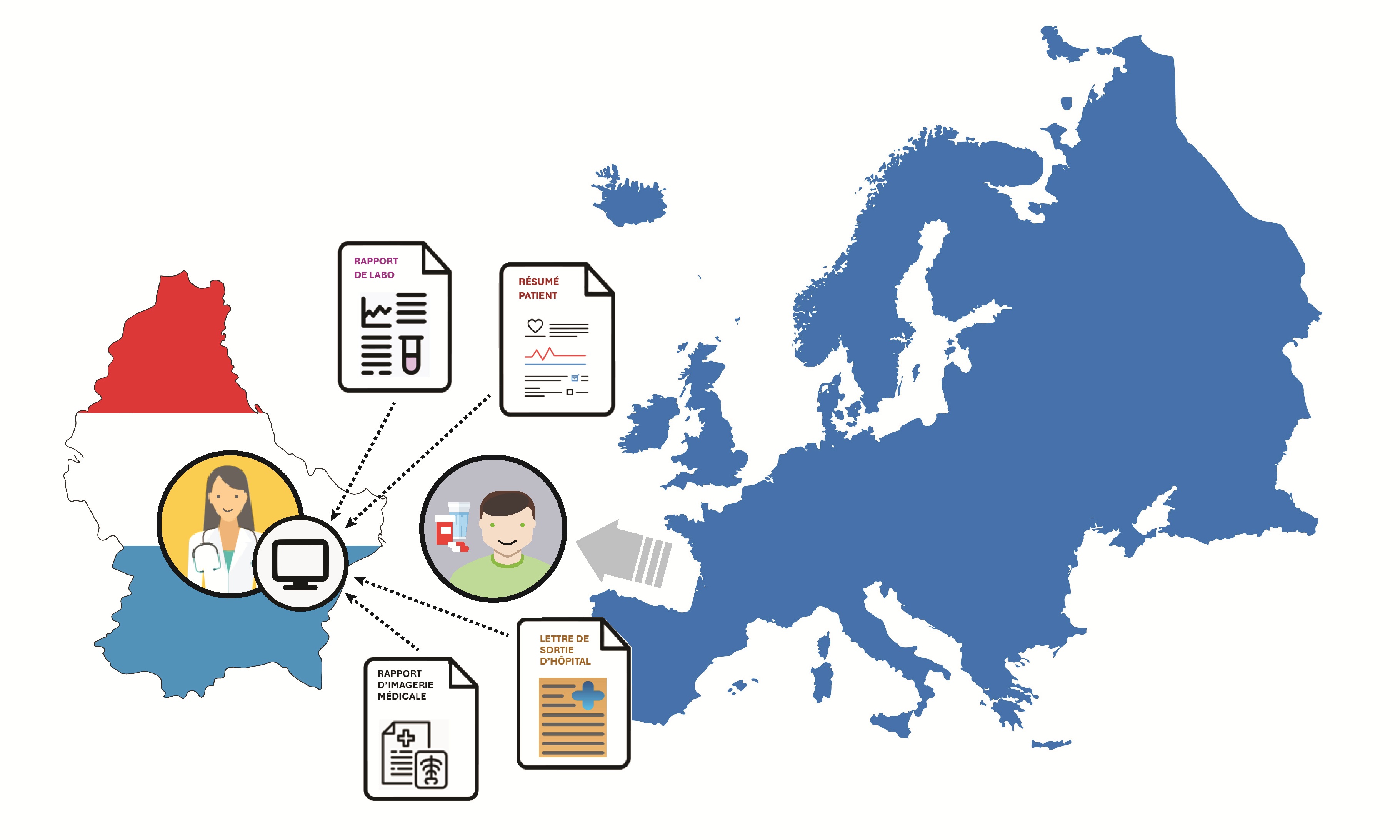 Dofir setzen d’Länner vun der Europäescher Unioun, MyHealth@EU - grenziwwerschreidend Online Gesondheetsservicer - ëm, déi et erméiglechen, perséinlech Gesondheetsdate sécher un den Dokter am Land weiderzeginn, wou de Patient versuergt gëtt.